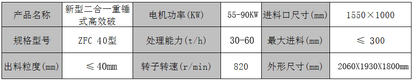 ZFC40型新型高效節(jié)能型二合一破碎機術(shù)參數(shù):